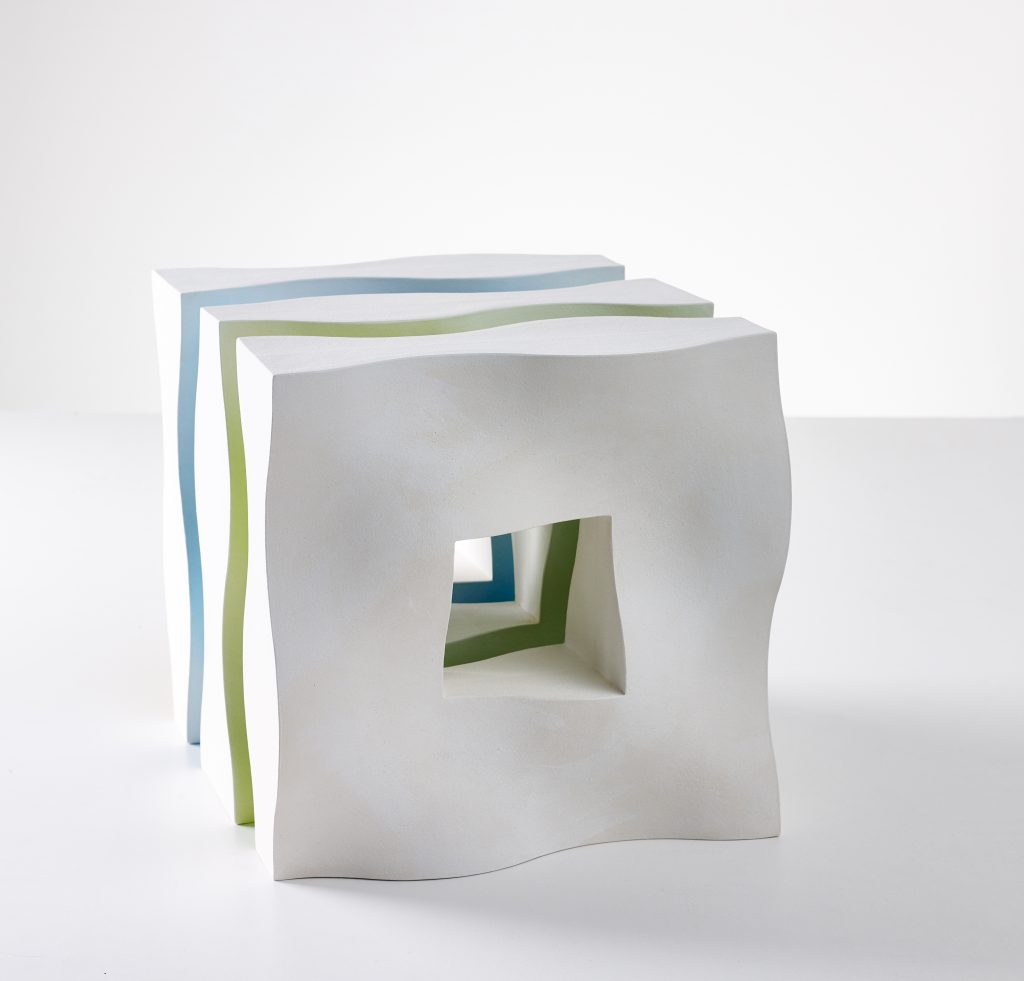 In der intensiven Auseinandersetzung mit Orten und Räumen entwickelt sie ihre Entwürfe, die sich aufgrund der verschiedenen Materialien wie Folie, Papier, Glas und Aluminium in die spezifischen Situationen integrieren und einen Widerhall entstehen lassen. Ein weiterer Schwerpunkt in ihrem Werk sind Collagen, sowie modulare Arbeiten aus Porzellan und Steinzeug.